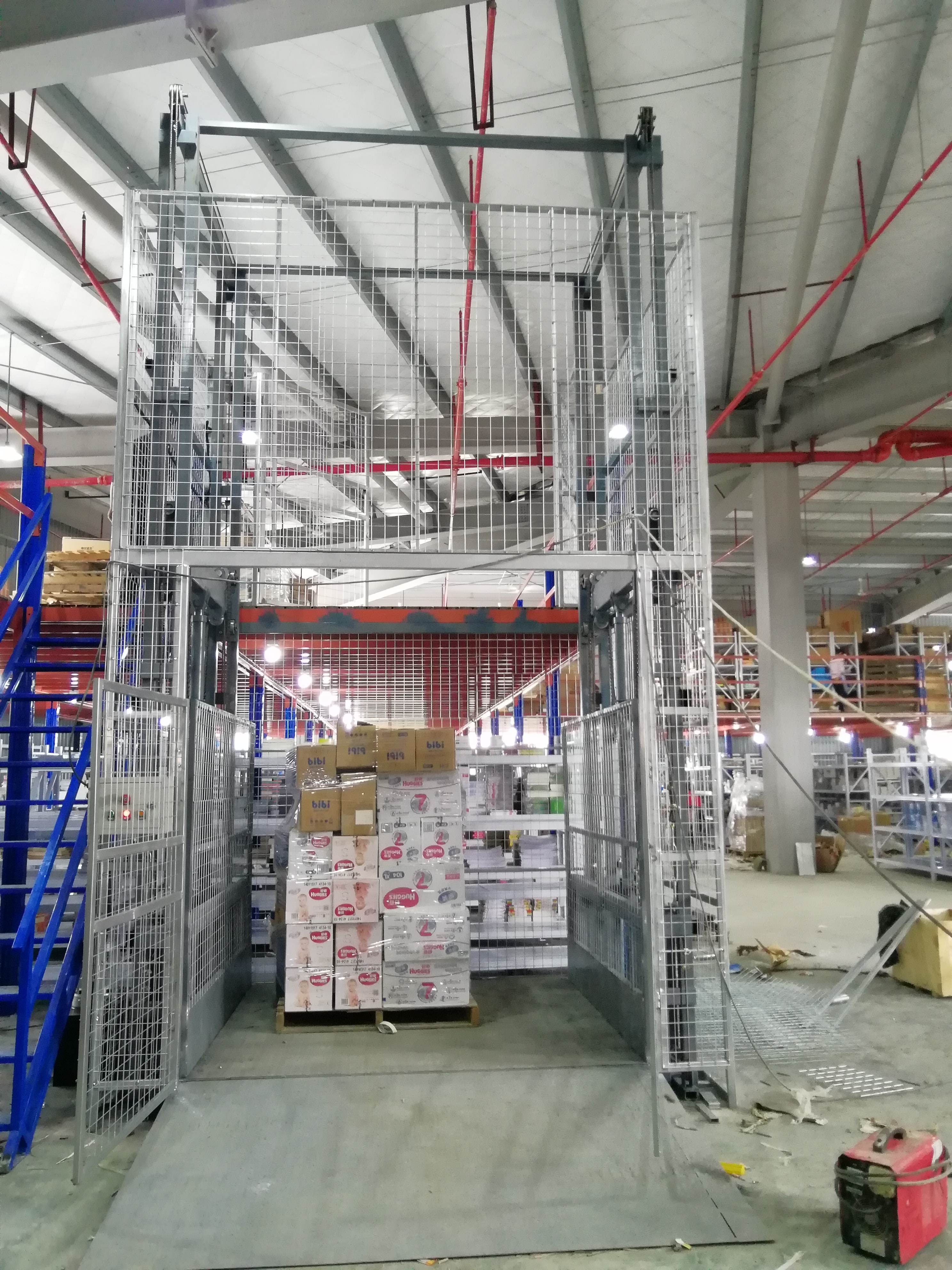 長沙縣東十路某工程機械公司鋼平臺與導軌式升降機完美結合使用